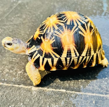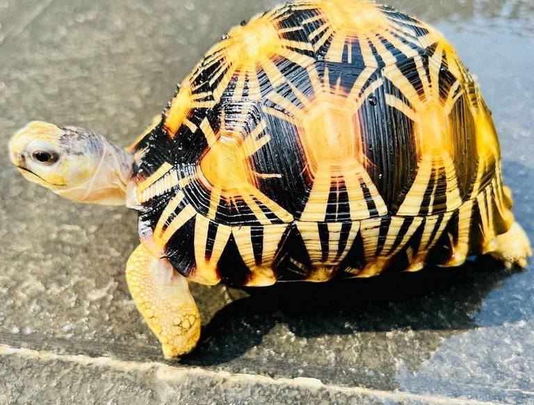 Healthy, lively baby radiated tortoise delivered with excellent care and expert advice.